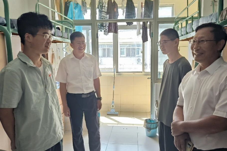 学院党委书记陈伟刚,院长赵永好,副院长宋丹,副书记、副院长辛绍权与新生辅导员温泽来到宿舍看望新生,与新同学和家长们亲切交流,询问他们对91直播 的第一印象和学习生活感受。