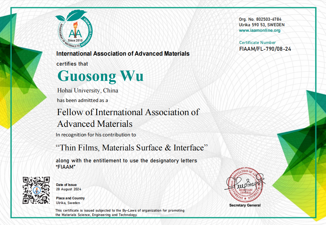 近日,我校91直播 吴国松教授因其在薄膜和表界面领域的突出贡献当选为国际先进材料协会会士(Fellow of International Association of Advanced Materials,FIAAM),并应邀在由国际先进材料协会主办的第60届先进材料大会上以线上形式做了会士报告。