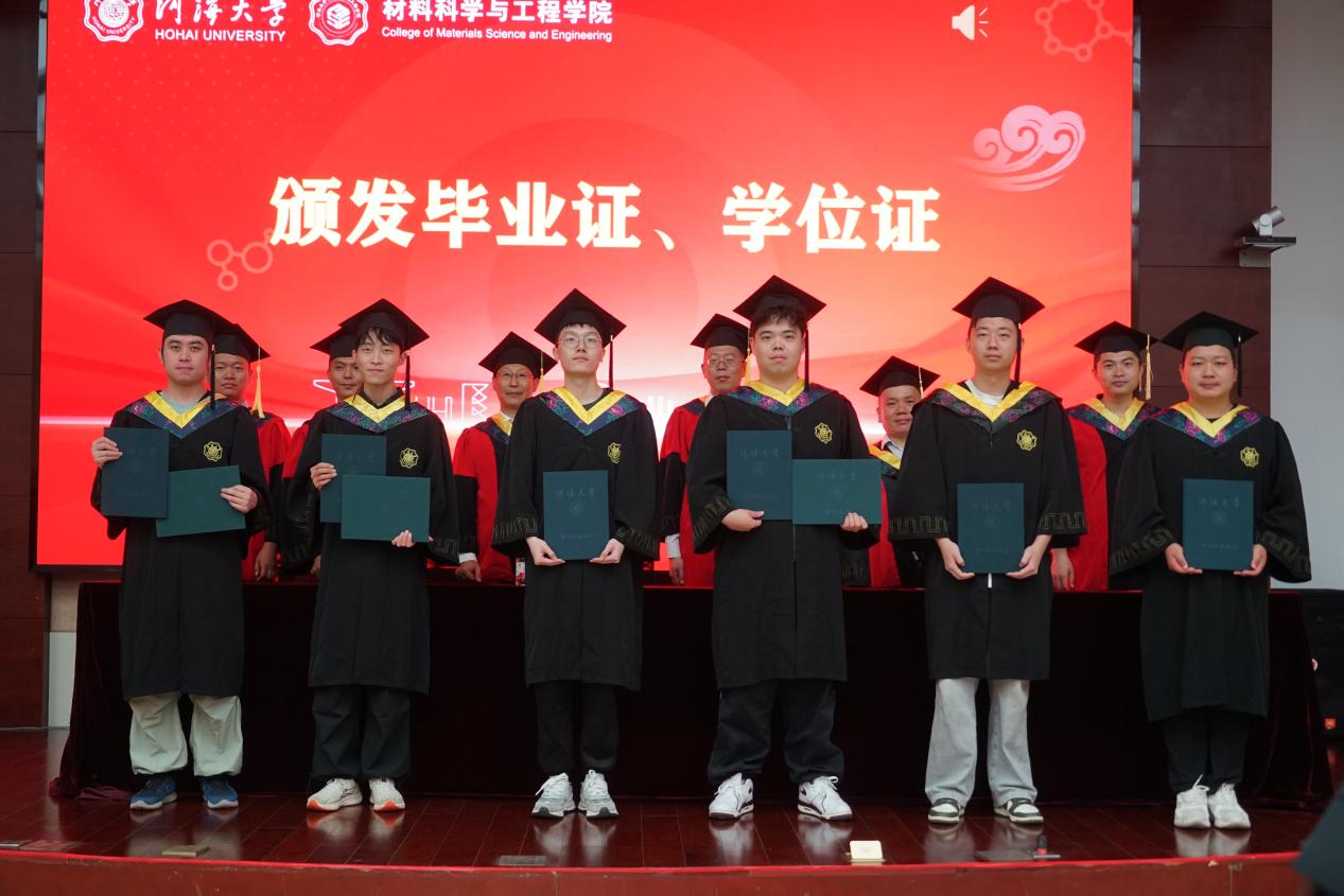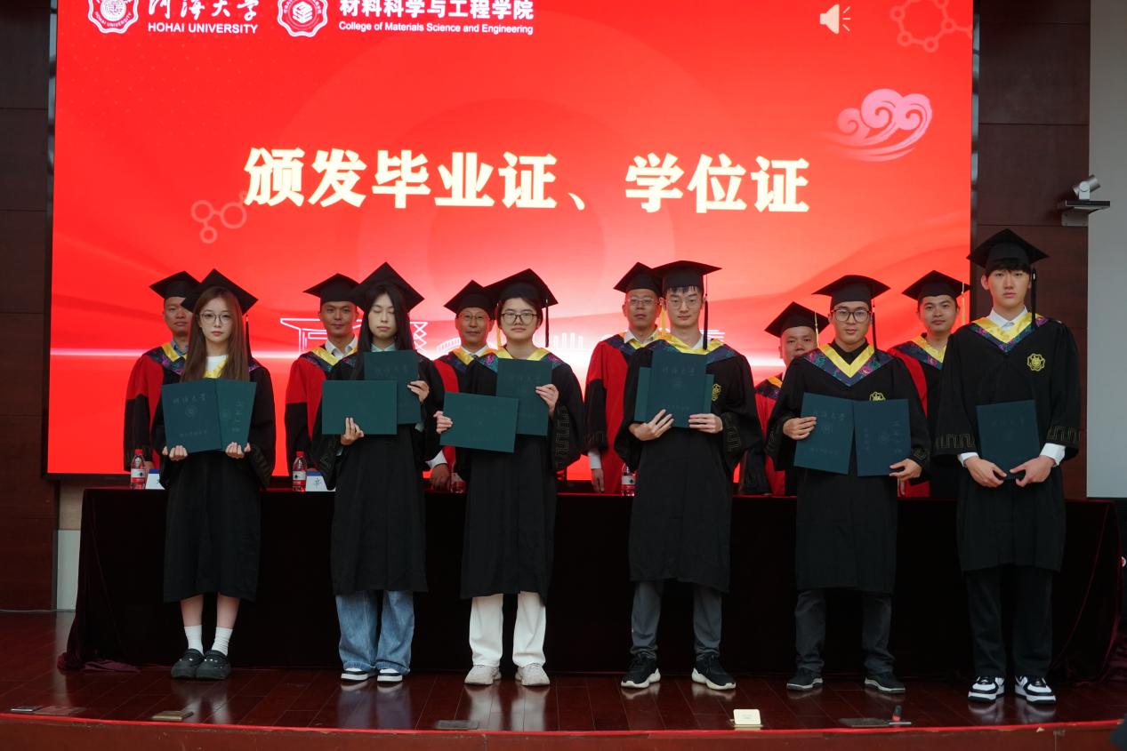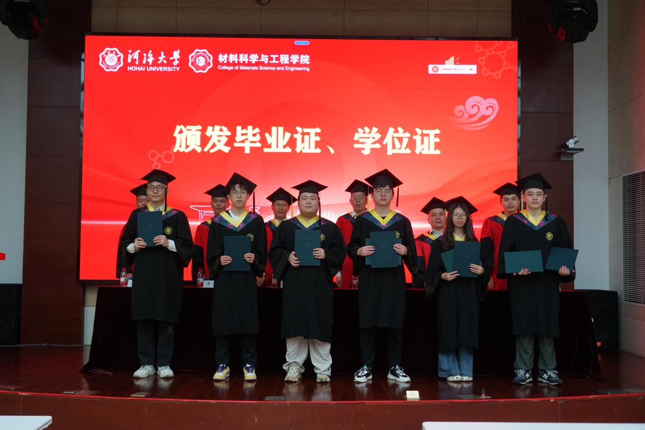 6月19日,91直播 2025届本科生毕业典礼暨学位授予仪式在江宁校区行政楼105报告厅与常州校区55号楼139报告厅隆重举行,共同见证2025届材料学子完成学业、开启人生新篇章的重要时刻。学院院长赵永好,党委书记陈伟刚,副院长杨可、宋丹,教师代表洪晟、刘欢、严春妍,辅导员温泽出席典礼。2025届全体本科毕业生及部分毕业生家长代表满怀喜悦与憧憬齐聚一堂。典礼由学院党委副书记、副院长辛绍权主持。