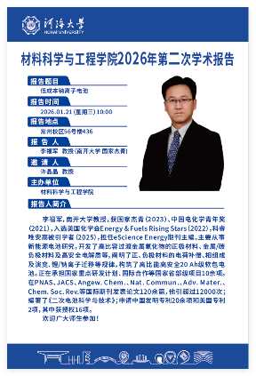 1月21日,南开大学化学学院、国家杰出青年基金获得者李福军教授应邀到材料工程与科学学院开展了主题为《低成本钠离子电池》的学术报告。 李福军教授从钠离子电池正极材料、硬碳负极材料、低成本钠离子全电池三个方面的研究进行了详细深入地讲解。